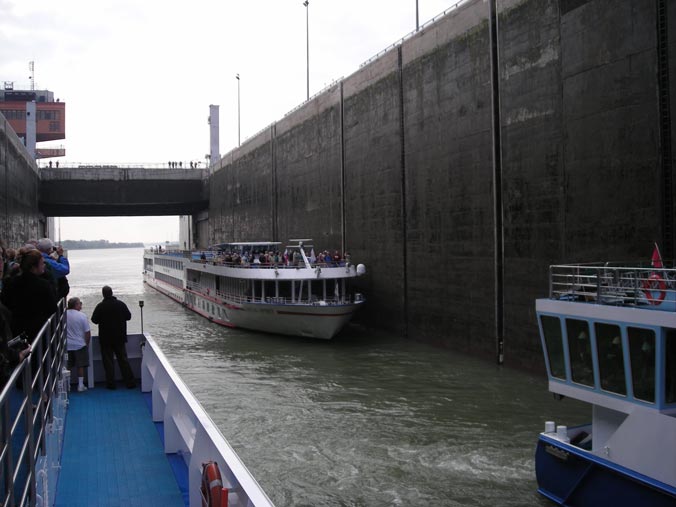 Entering one of many locks on the Danube