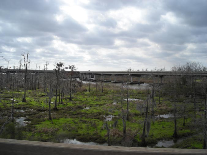 Tom and his wife loaded up the RV and hit the road in January of 2008. After making two stops to visit family in Bullhead City, Arizona, and Dallas, Texas, they arrived in New Orleans to celebrate Mardi Gras with a group of other Good Sam Club members for eight days. They had a great time at all the Mardi Gras parades, catching lots of beads and other throws from all the cool floats passing by. They had fun at a masquerade party, a formal Bal Masque, and a Super Bowl party. They ate lots of good food at Brennan's, the Court of the Two Sisters, Cafe Du Monde, and the New Orleans School of Cooking. They explored the French Quarter, cruised the Mississippi on a steamboat, and visited two historic plantation homes. The next destination was Disney World for four days. Unfortunately, they were sick with a flu bug and only made it to Epcot for half a day. They were feeling much better when they arrived in Miami for a five day stay. From here, they visited the Everglades National Park and the Biscayne National Park. They also drove the rental car out to Key West for two days. They visted the Hemingway House, watched the sunset from Mallory Square, and took a seaplane out to Dry Tortugas National Park, a small island about 75 miles from Key West. The next stop was Charleston, South Carolina. Here, they took a carriage ride through the historic district to see all of the cool homes. They also took a boat out to Fort Sumter, where the first shots of the Civil War were fired. The last destination before heading home was the Congaree National Park in South Carolina. Elevated highway through Louisiana swamp